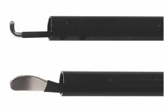 - canule: Een lange, slanke buis die via een trocar in het lichaam wordt ingebracht, met aparte kanalen voor afzuiging en irrigatie.